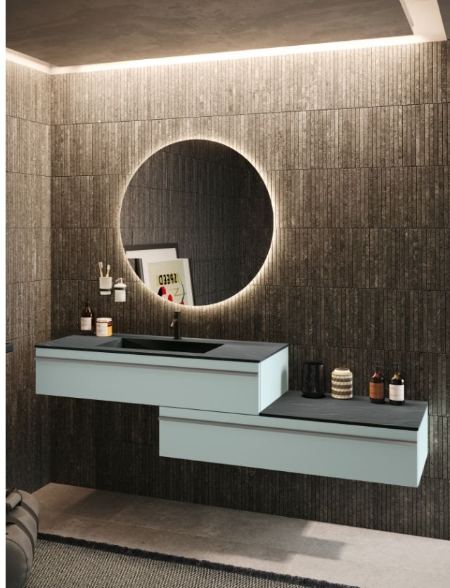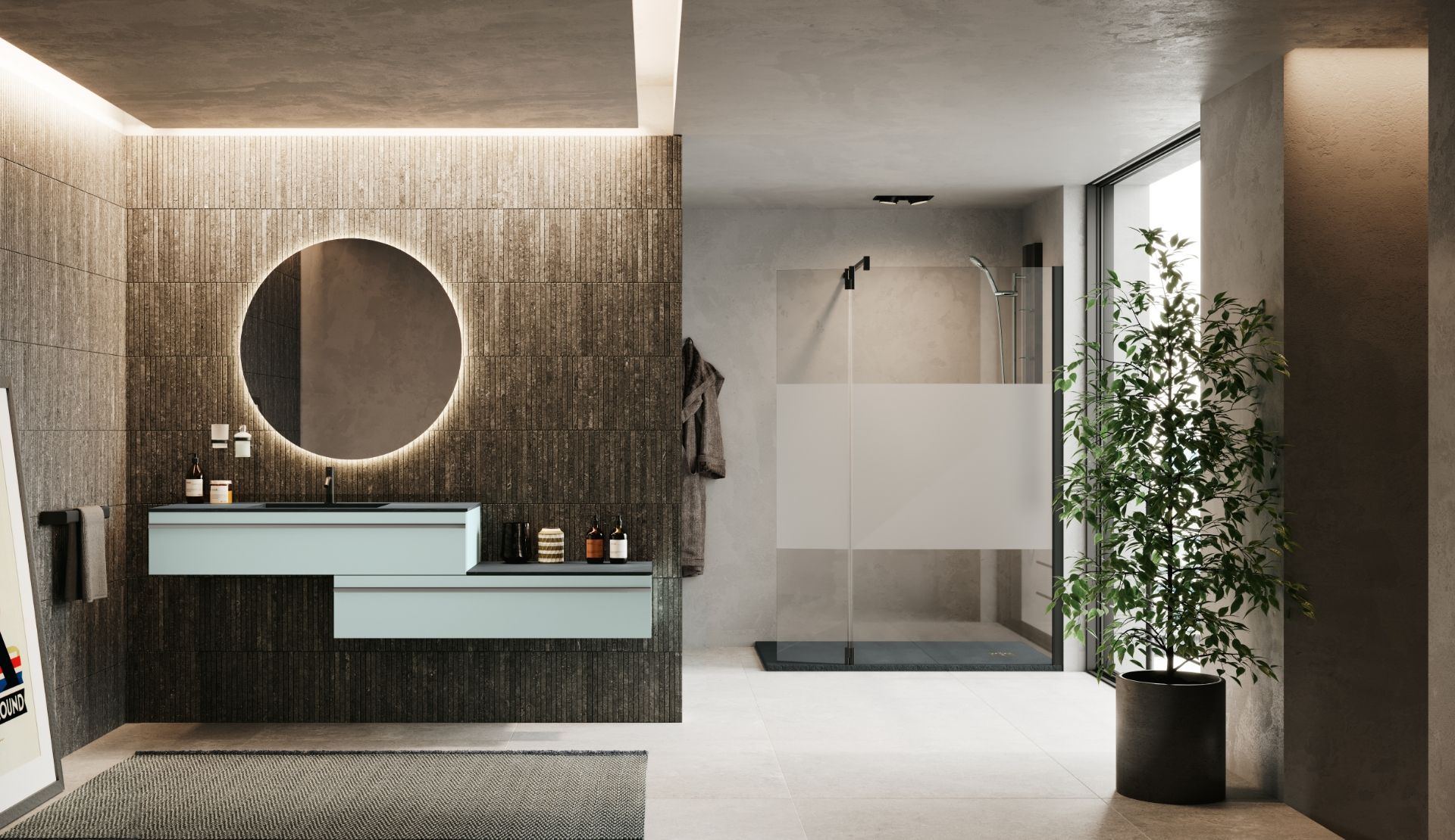 The Step collection is an aesthetic synthesis of "pure" design. With defined, linear geometries, surmounted by each other and emphasised by colour contrasts, the Iotti by Novellini collections are the perfect expression of refined, minimalist design in which synthesis is achieved by the relationship between forms and finishes.